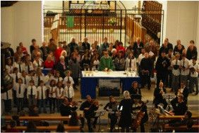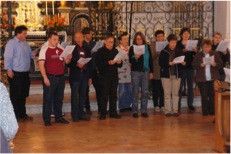 Die Vesper fand im Kloster Visitation statt und wurde vor allem von vielen SoKiMuWo-Teilnehmern und den Klosterfrauen besucht. Das Feuer der "neuen" Rhythmen sprang von Udos Fingern via Key-board und Sängerinnen und Sängern schnell über auf alle Gottesdienstbesuchenden.